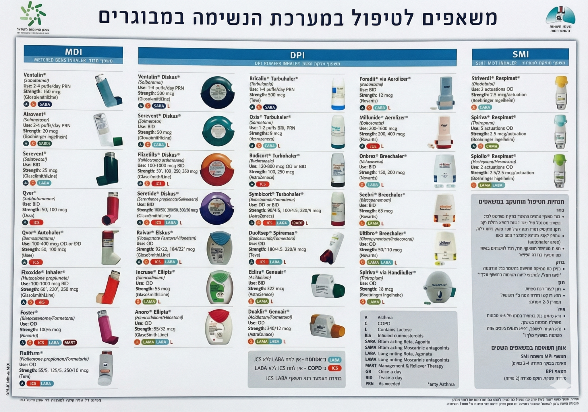 * לטווח קצר (SABA/SAMA): לשימוש "לפי הצורך" להקלה מיידית (כמו ונטולין).